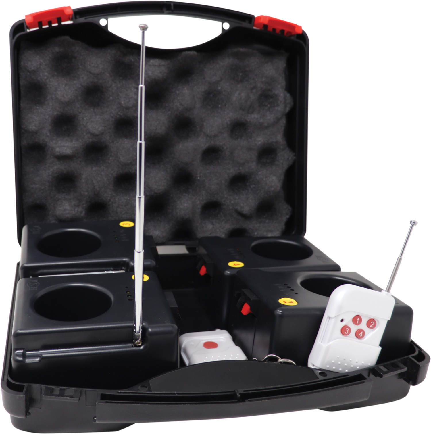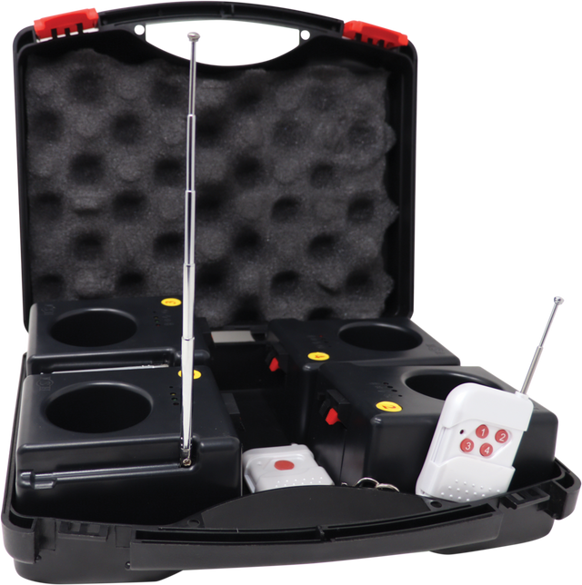 Cette valise complète contient 4 boîtiers de tir avec 2 télécommandes : une pour tir simultané spectaculaire et une autre pour tir alterné créant un show dynamique. Idéale pour mariages, anniversaires, inaugurations et tous vos événements qui méritent un final grandiose !