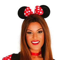 Diadème souris noir et rouge en tissu pour femme