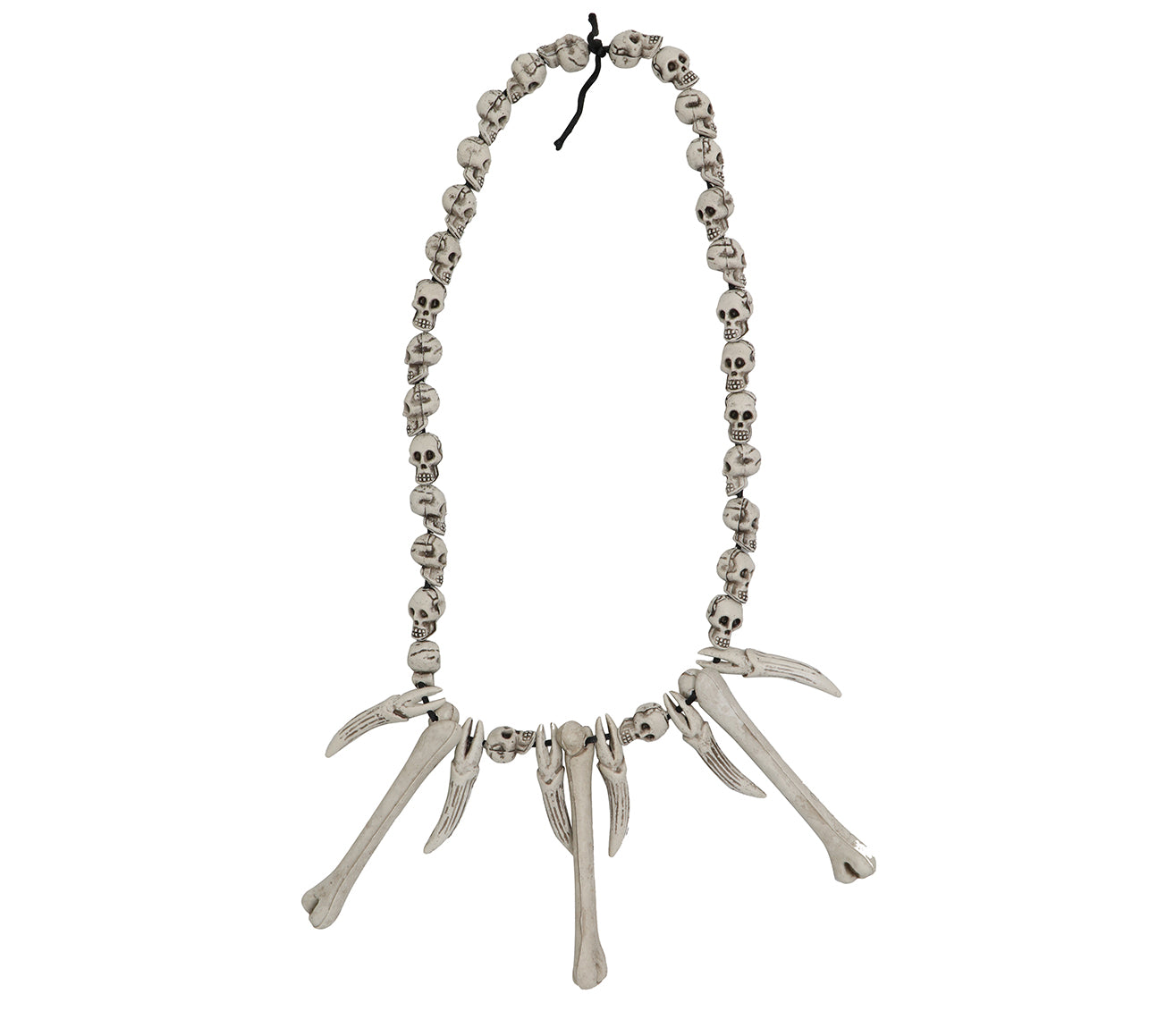 Collier homme des cavernes tête de mort beige PVC - Halloween