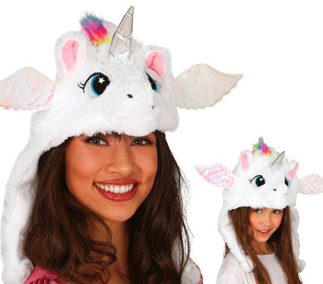 Bonnet licorne blanc en polyester - Festif