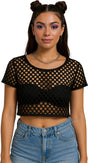 T-shirt résille noir femme - polyester - style années 80