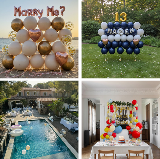 De là, tout s’enchaîne naturellement : le choix des ballons, le gonflage à l’hélium, la préparation de votre composition et, si besoin, l’installation sur place.